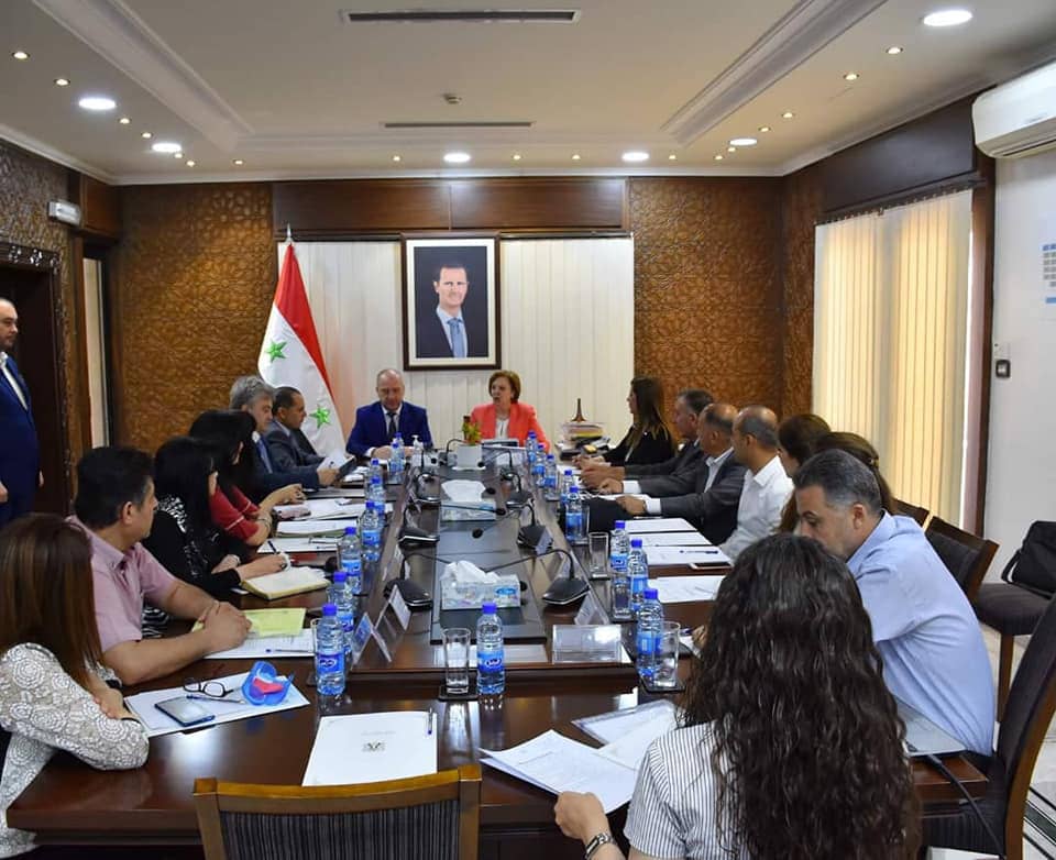 وتطرق الاجتماع أيضاً إلى ما تم إنجازه لإنهاء أعمال تأهيل مركز الزوار في تدمر ومقترح إعداد دراسة لتوظيف بعض بيوت المشاهير التراثية بالتعاون بين الوزارتين ونتائج المتابعة مع منظمة اليونيسكو بخصوص مشروع إقامة تلفريك في منطقة الحفة باللاذقية ضمن مسار قلعة صلاح الدين، واستكمال مشروع لوحات الترميز ثنائي البعد QR في بعض المسارات والمواقع الأثرية والإعداد المشترك لورشة المقترحة حول برنامج بيوت المشاهير وبيت أبو خليل القباني.