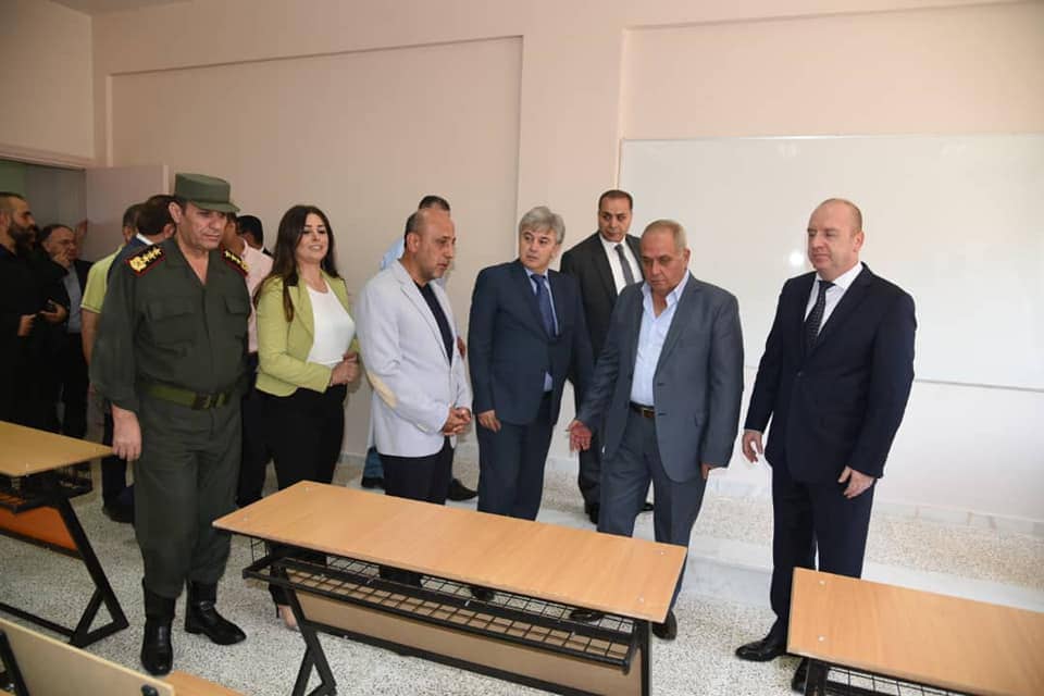 ولفت مرتيني إلى أنه وعملاً بتوجيهات الرئيس بشار الأسد لتطوير التعليم والارتقاء به بشكل عام والتعليم التقني والتخصصي والمهني والتعليم السياحي والفندقي بما يخص إعادة إعمار القطاع السياحي وتطوير كل أنماط القطاع السياحي والتي ترتكز أولاً على تطبيق معايير الجودة والارتقاء بالموارد البشري، كانت البداية من عدة مدارس ومعاهد في القطر عبر إعادة تأهيلها وترميمها واستكمال المشاريع التي توقفت نتيجة الإرهاب، مبيناً أنه على سبيل المثال هذا المبنى كان محتلاً من العصابات الإرهابية وجعلوه لما يسمى مقراً لمحكمتهم الشرعية وبفضل بسالة جيشنا البطل تم تحريره واستكمال المشروع بالمعايير والمقاييس الدولية.