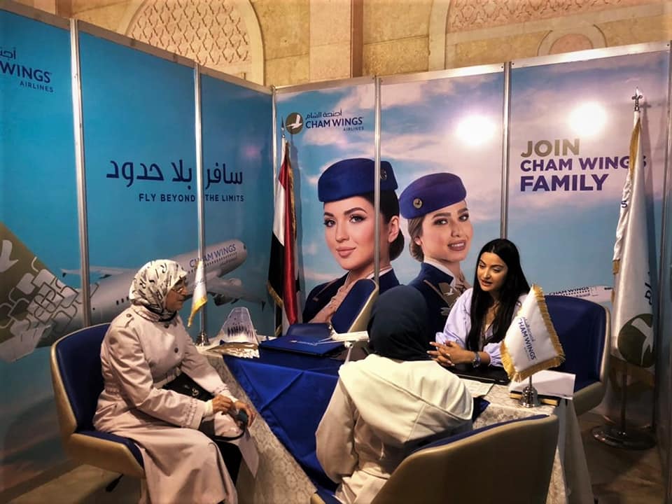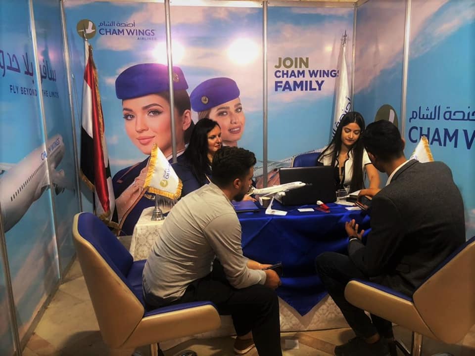 شاركت أجنحة_الشام للطيران بمعرض التوظيف Job Fair والذي أقيم في مدينة حلب الشهباء في فندق الشيراتون من تاريخ 18 ولغاية 21 آب 2022، وتأتي هذه المشاركة ضمن اهتمام الشركة باستقطاب فئة الشباب والموظفين للعمل ضمن كوادرها ولرفد مكاتب الشركة في حلب بالخبرات الفنية والإدارية المتميزة وكان لهذه المشاركة أهمية كبرى من حيث اهتمام الشركة بدعم وتشجيع الشباب وخصوصاً في المحافظات السورية للعمل وفتح مجال التوظيف المناسب لهم.
