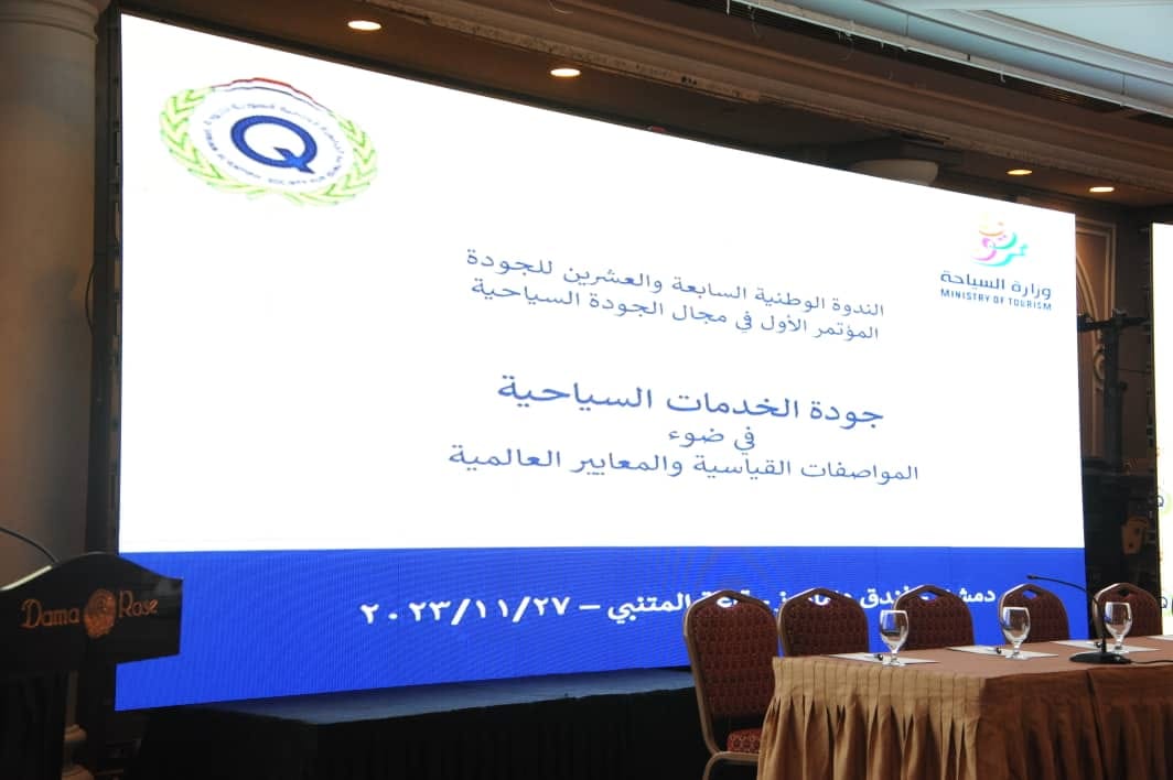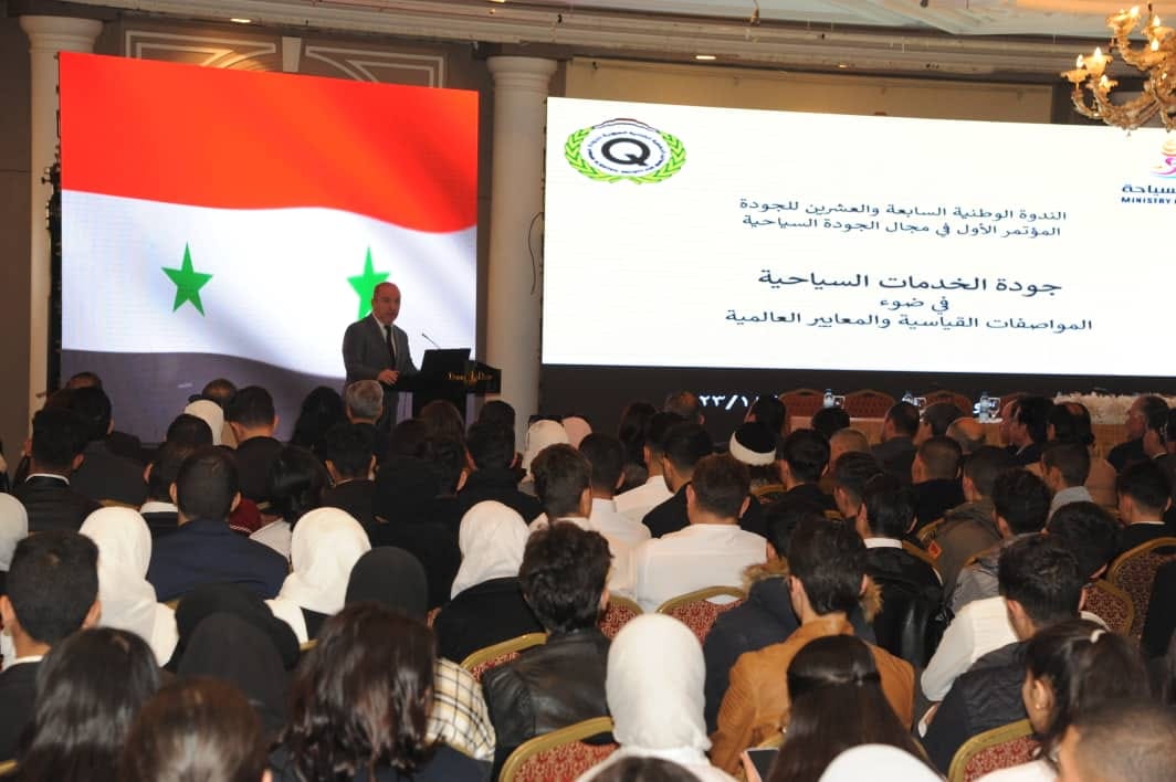 تحت عنوان جودة الخدمات السياحية في ضوء المواصفات القياسية والمعايير العالمية.. أقامت وزارة السياحة والجمعية العلمية السورية للجودة الندوة الوطنية السابعة والعشرين للجودة والمؤتمر الأول في مجال الجودة السياحية في فندق الداما روز بدمشق بحضور وزير السياحة المهندس محمد رامي رضوان مارتيني.