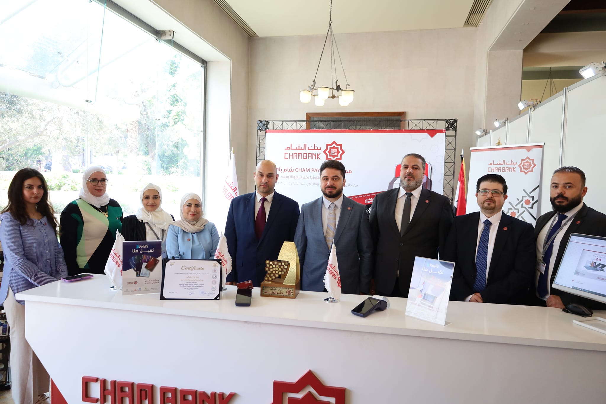 كما يشارك بنك الشام في معرض التحول الرقمي الذي يُعد جزءً من فعاليات المؤتمر في “قاعة رضا سعيد ” في رئاسة جامعة دمشق.