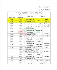 وبناء عليه، أعلنت الهيئة استئناف إصدار عقود التأمين الإلزامي وفق التعرفة المعدلة بالليرة السورية الجديدة، والتي تشمل مختلف أنواع المركبات، بدءاً من السيارات السياحية، مروراً بمركبات النقل والبضائع، والآليات الزراعية، وصولاً إلى الدراجات الآلية والكهربائية، مع تحديد الأقساط حسب نوع المركبة، وسعة المحرك، وطبيعة الاستخدام.